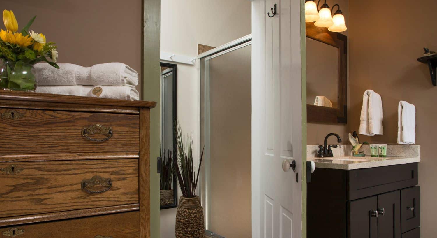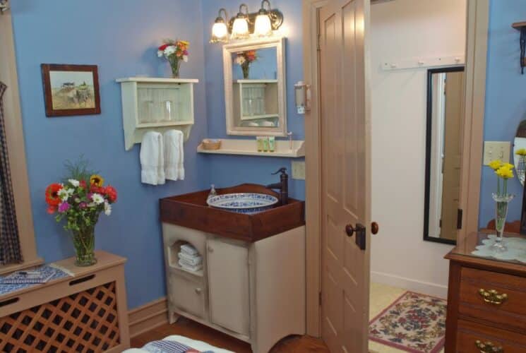 Located at the rear of the Main House on the second floor, the spacious Amish Room is both welcoming and comfortable. This well-appointed room features a king-size bed with a memory foam mattress to give you a restful night’s sleep. Here you will be surrounded with a “prachtig goot” (wonderful good) collection of furniture and accessories, including two upholstered chairs, Amish clothing, crafts, and publications about the Amish community in Lancaster County.